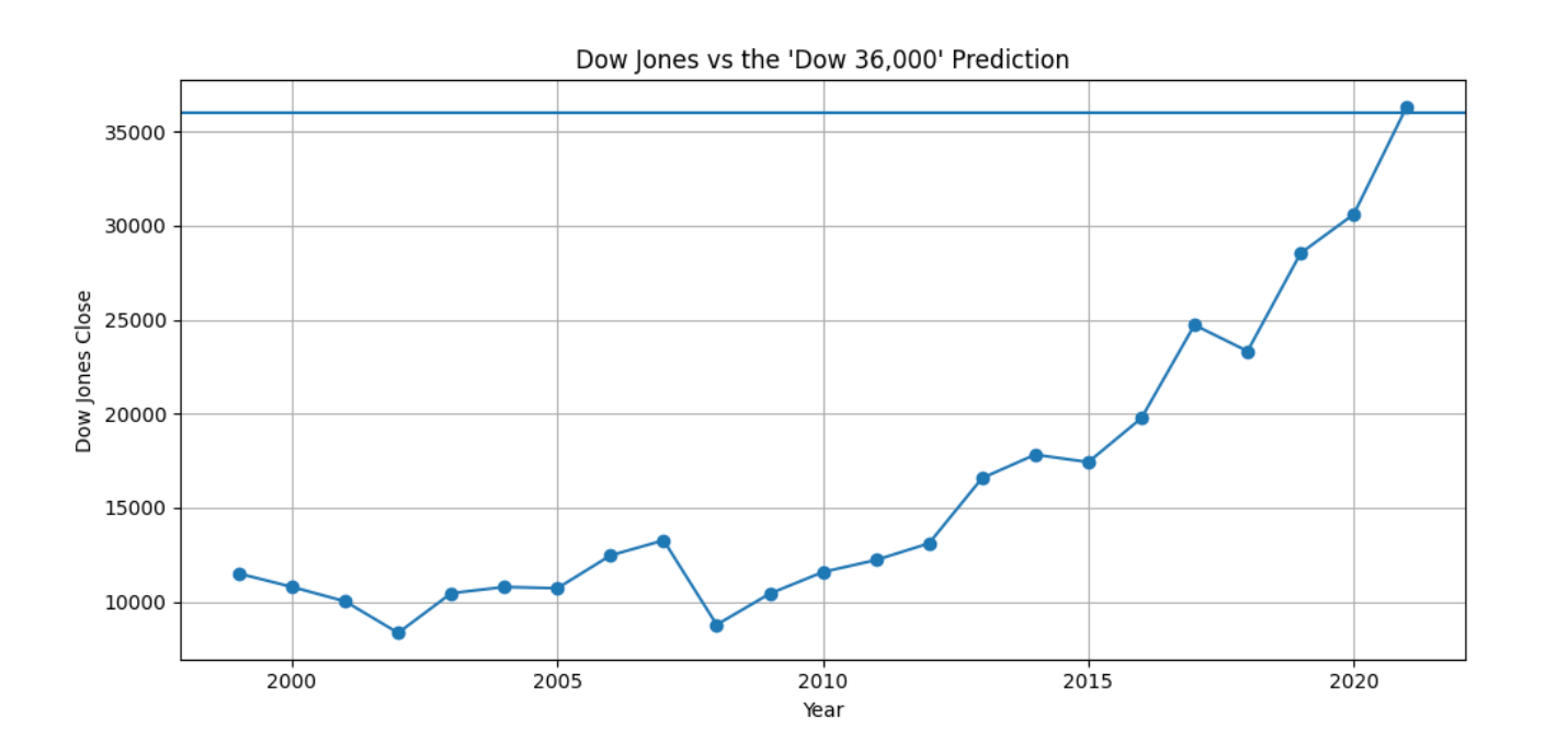 One of the book’s co-authors later acknowledged that the core error was “assigning a timeline to a number.” Investors who followed the prediction without diversification could have waited decades for it to materialize.