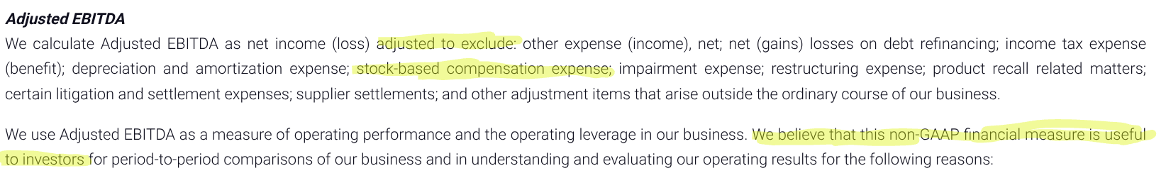 Just take a look at Peloton. Here's their most recent cashflow statement. Notice how the one item I highlighted dwarfs all the others at $47 million just for the quarter: